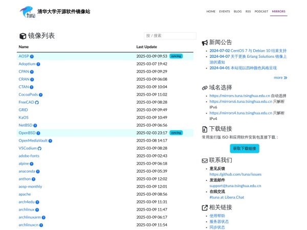 清华大学开源软件镜像站(全称:清华大学开源软件镜像站 | Tsinghua Open Source Mirror)于2025年03月14日收录在本站开发框架源码导航分类,并成功建立了索引服务,为用户提供查找/检索服务。