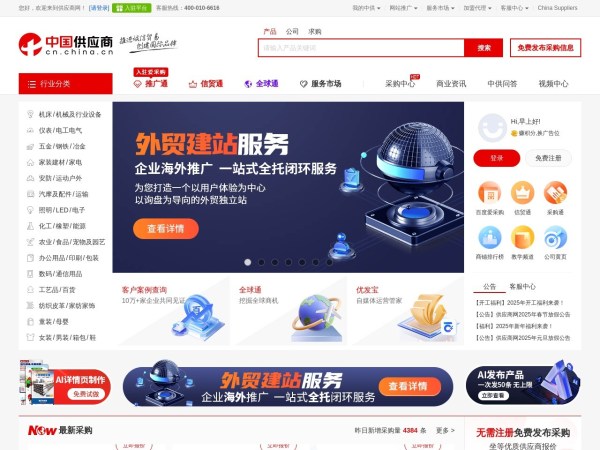 供应商网(全称:供应商网 - 免费B2B信息发布网站,百度爱采购官方合作平台)于2025年03月16日收录在本站生活购物导航分类,并成功建立了索引服务,为用户提供查找/检索服务。