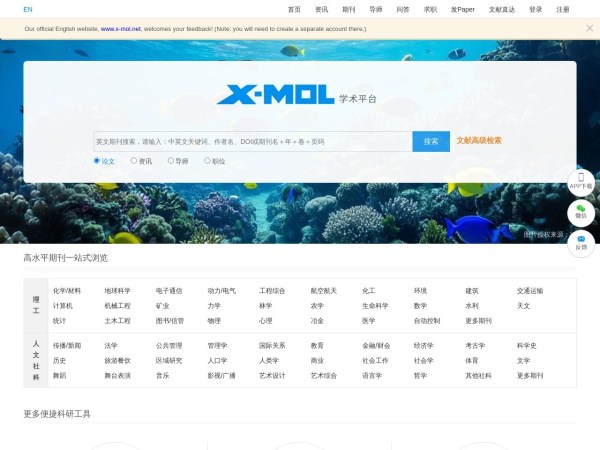 X-MOL学术平台(全称:X-MOL学术平台)于2025年03月19日收录在本站学习学术导航分类,并成功建立了索引服务,为用户提供查找/检索服务。