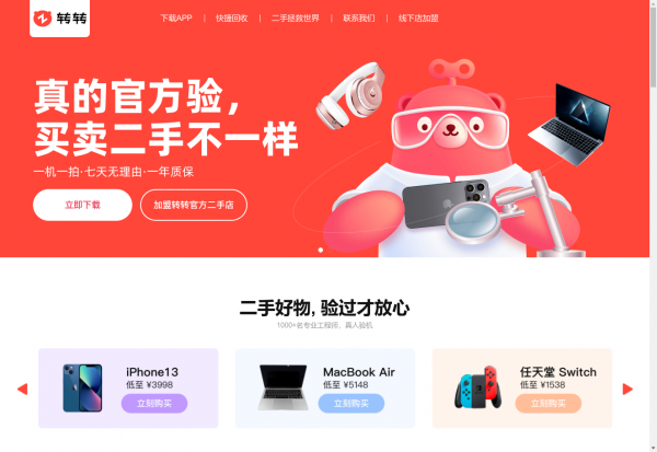 转转APP提供多品类的二手交易服务,并在国内较早创立平台验机服务——“官方验”;全国有3大质检中心,超1000名真人验机师。转转“官方验”手机会经过20道外观检测,55道功能检测,让用户放心买省心卖。