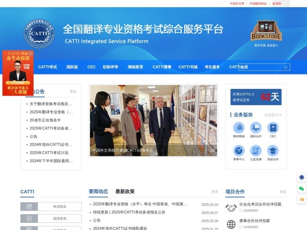 CATTI(全称:全国翻译专业资格(水平)考试网)于2025年04月20日收录在本站学习考试导航分类,并成功建立了索引服务,为用户提供查找/检索服务。