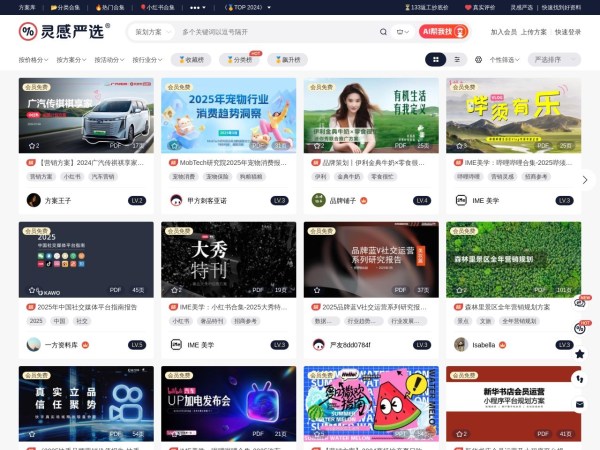 灵感严选每天更新, 超10000份严审方案报告, SINCE2016服务数十万策划人, 活动策划/营销策划/招商策划/短视频直播//课件研报【一搜触达, 即看即下!】
