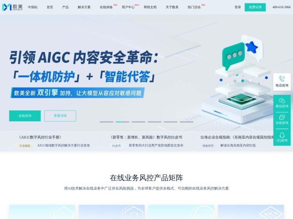 数美科技(全称:数美科技_内容安全_智能业务风控_护航业务增长)于2025年05月17日收录在本站资讯科技导航分类,并成功建立了索引服务,为用户提供查找/检索服务。