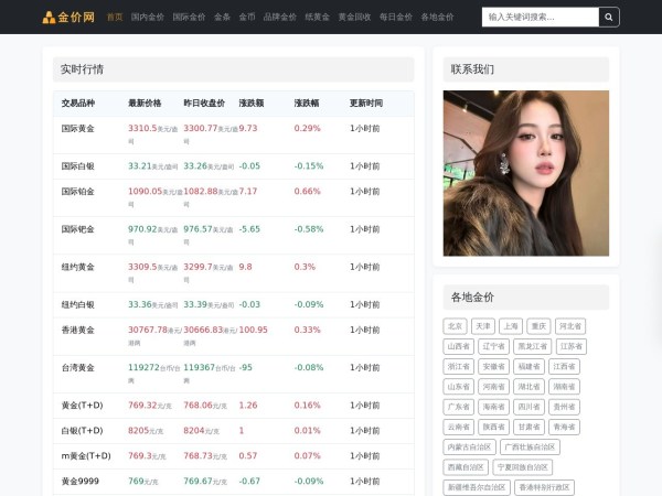 实时金价查询(全称:国际黄金白银实时价格_今日铂金钯金最新行情报价_金价查询)于2025年05月28日收录在本站工具搜索查询导航分类,并成功建立了索引服务,为用户提供查找/检索服务。