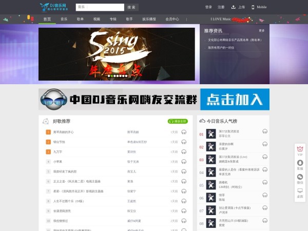 DJ音乐网(全称:DJ音乐网-最新流行好听的网络伤感歌曲大全在线试听网站)于2025年06月08日收录在本站音乐歌曲导航分类,并成功建立了索引服务,为用户提供查找/检索服务。