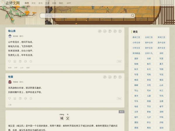 古诗文网(全称:古诗文网-古诗文经典传承)于2025年06月17日收录在本站学习书籍导航分类,并成功建立了索引服务,为用户提供查找/检索服务。