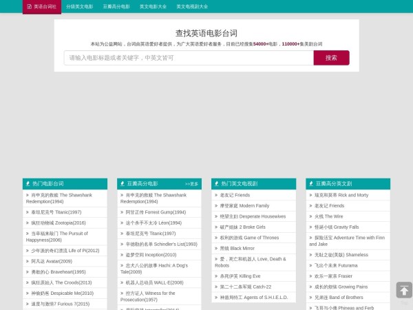 英语台词社(全称:英语台词社—54000电影,110000集美剧完整台词)于2025年06月18日收录在本站学习语言导航分类,并成功建立了索引服务,为用户提供查找/检索服务。