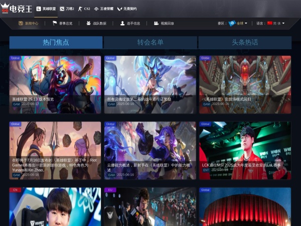 GG电竞王(全称:lol GG电竞王-世界第一环球lol电竞数据平台,汇聚lol全球新闻)于2025年06月18日收录在本站游戏资讯导航分类,并成功建立了索引服务,为用户提供查找/检索服务。