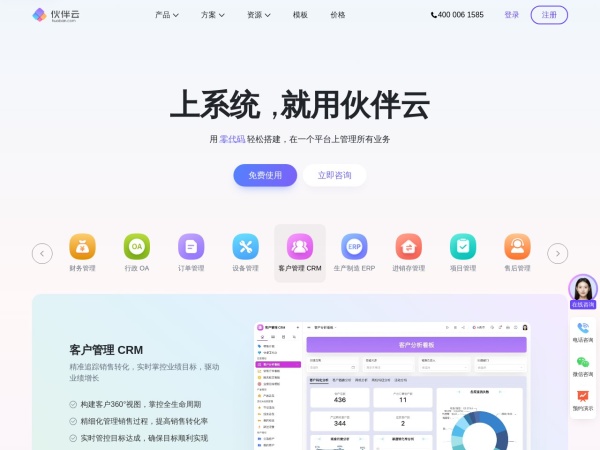 伙伴云(全称:伙伴云-上系统 就⽤伙伴云零代码 300万用户的选择)于2025年06月30日收录在本站开发工具导航分类,并成功建立了索引服务,为用户提供查找/检索服务。