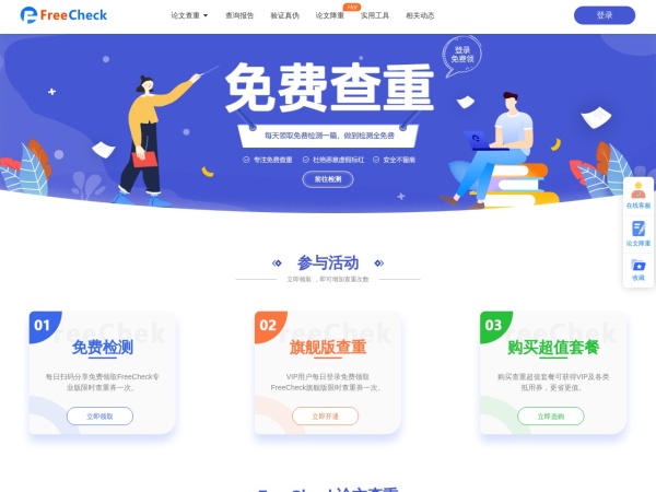 FreeCheck(全称:FreeCheck免费查重官网 - 精准的论文检测系统 - 适用各类论文检测)于2025年07月19日收录在本站工具文档处理导航分类,并成功建立了索引服务,为用户提供查找/检索服务。