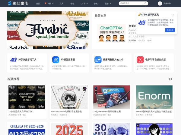 素材集市(全称:素材集市 - 发现全网创意资源)于2025年07月25日收录在本站设计素材导航分类,并成功建立了索引服务,为用户提供查找/检索服务。