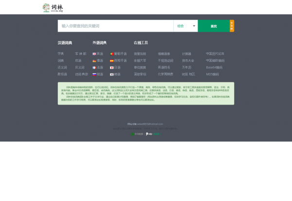 词林(全称:在线词典|近义词词典|诗词典故|翻译词典_词林在线词典)于2025年08月24日收录在本站工具搜索查询导航分类,并成功建立了索引服务,为用户提供查找/检索服务。